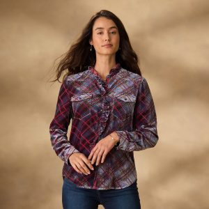 Embrace your artistic spirit in our sheer. easy-fit top with ladder lace. ruffle neckline and tassel ties. Cotton/viscose. Hand wash. Imported. Exclusive. Sizes XXS (00). XS (0 to 2). S (4 to 6). M (8 to 10). L (12 to 14). XL (16 to 18). Approx. 25L.
