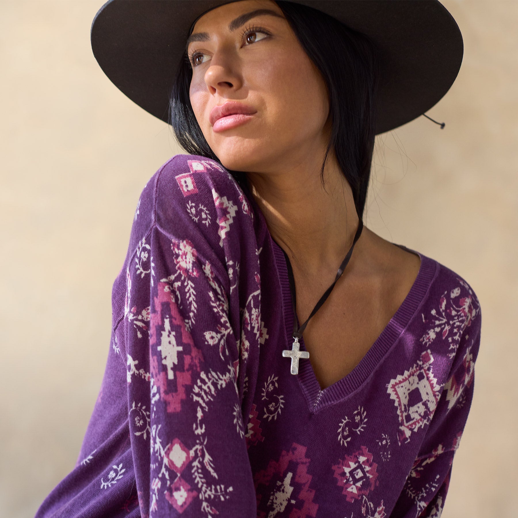 A new Sundance classic. with bandana/floral print front and back and hand-embroidered embellishment at the open V-neckline. Exposed seams. rib trim. relaxed fit. Cotton. Hand wash. Imported. Exclusive. Sizes XS (0–2). S (4–6). M (8–10). L (12–14). XL (16–18). XXL (20–22). Approx. 24l.