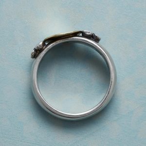 As though offering up a serving of sunlight. a dished disk of hammered 14kt gold centers our sterling silver ring. A handcrafted exclusive in whole sizes 5?C9.