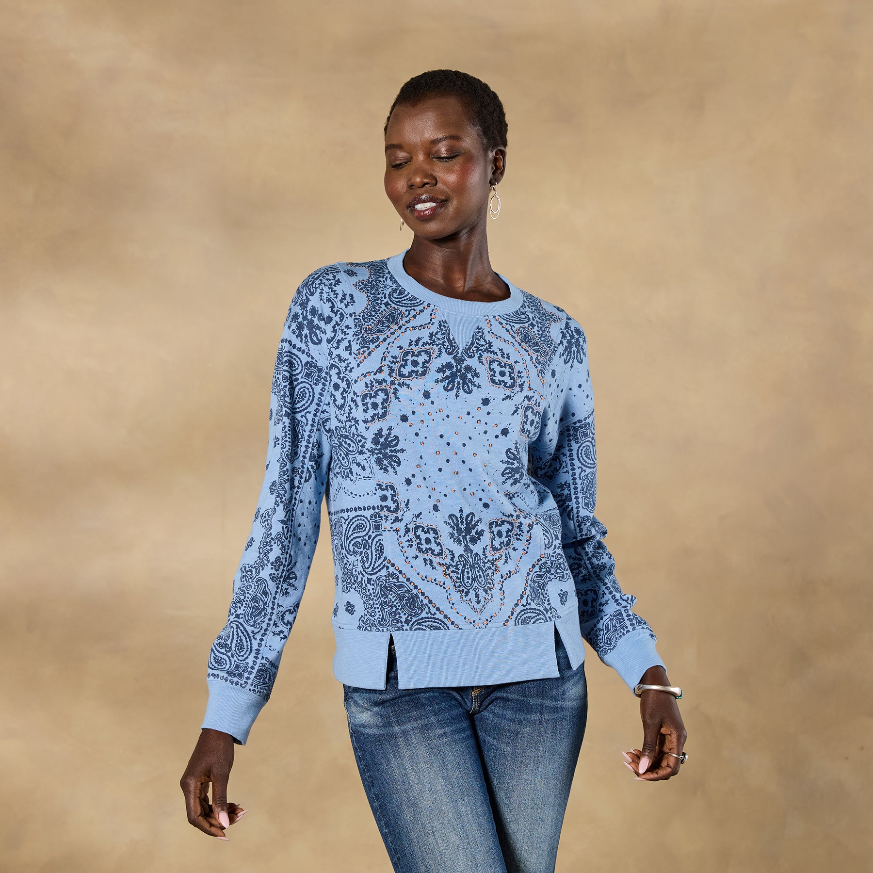 Our Maebelle Sweatshirt celebrates Western spirit with its charming bandana print. scattered embroidery. drop-shoulder silhouette and seam details. Cotton. Machine wash. Imported. Exclusive. Sizes XS (0?C2). S (4?C6). M (8?C10). L (12?C14). XL (16?C18). XXL (20?C22). Approx. 20l.