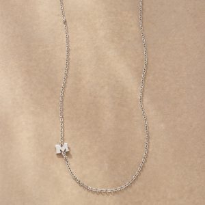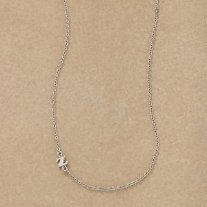 Elegance with a personal touch. Our necklace is handcrafted with upper-case serif letters A to Z. Sterling silver chain and lobster clasp; rhodium-plated sterling silver letters. Made in USA. 17l.